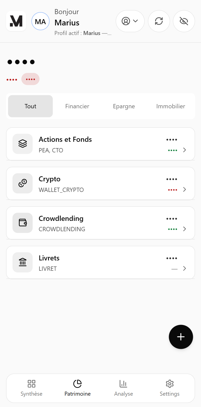 Actions, crypto, épargne, immobilier. Tout en un coup d'oeil.